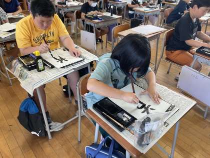 書写では、「しんにょう」の形や部分の組み立て方に気を付けて練習しています。