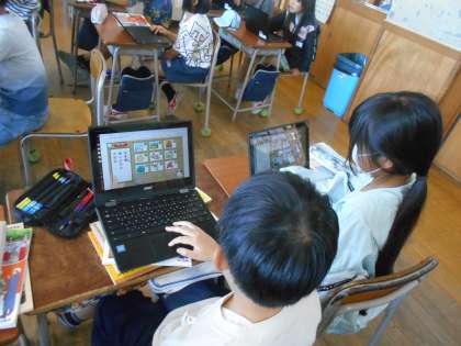 社会科は都道府県かるたのデジタル版に取り組んでいました。