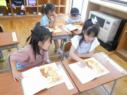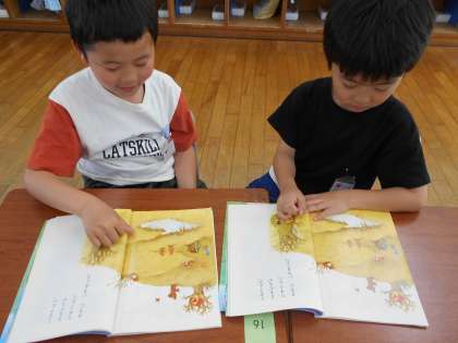 場面を見比べて変化したところや、絵の中の動物の表情に着目して、内容を読み取っていました。