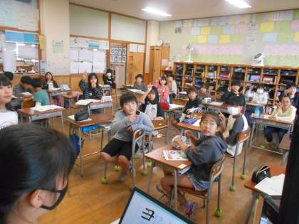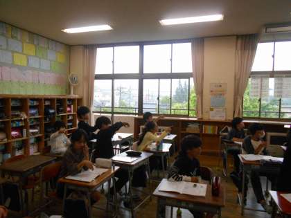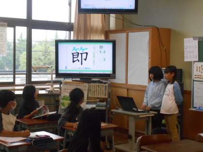 この学級は新出漢字を子供が教えるスタイルで学習しています。