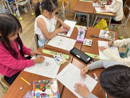 今日は、アサガオの種をよく見て、どんな様子かを絵や言葉にして表しました。
