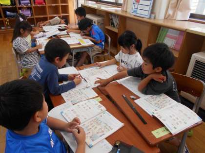 初めはわからなかった子供も、班のみんなで話し合うことでおはなしを考えることができました。