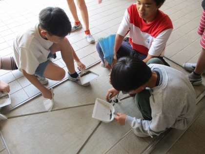 児童玄関のすみの細かいところを熱心にそうじしていました。