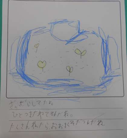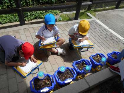 とある子は、「僕のあさがおの芽がまだひとつ出ていないよ。土の中でまだ眠っているんだね。たくさん寝ているから、一番大きく育つかな。」と言っていました。