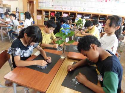 「きれいだな」「細かいな」と紫陽花の美しさに心惹かれたり、花のつくりの面白さに気付いたりする声が聞こえました。