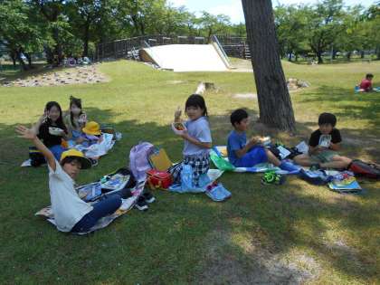 子供たちが楽しみにしていたお弁当タイムです。みんな美味しそうに食べていました。「わたしのお弁当見て!」と嬉しそうな子供たちでした。保護者の皆さん、お弁当の準備ありがとうございました。