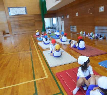上体起こしの2回目の記録を測りました。初めてやった前回よりも、記録がぐんと伸びている子供が多かったです。家での練習の成果でしょうか。