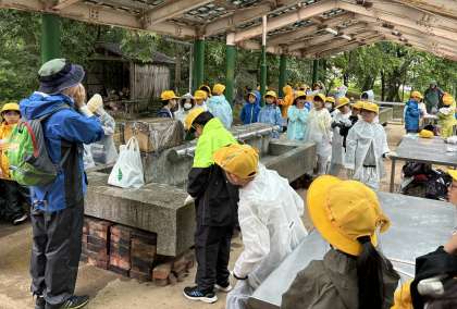 野外炊飯をする場所に到着 焼きそば作りの開始です