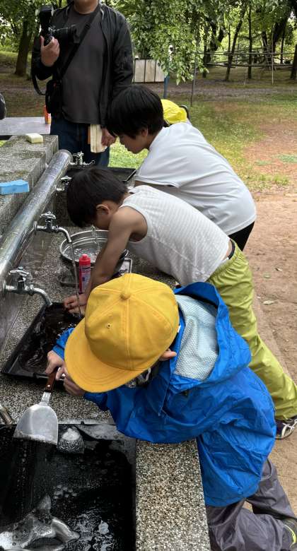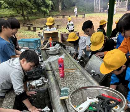 食べ終わったあとは片付け 渾身の力を込めて鉄板を磨きます