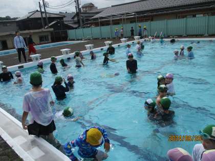 2年生と5年生で、一緒にプールに入りました。5年生が優しく寄り添ってくれて、安心して大プールに入れました。