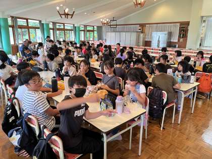 宿泊学習7 7.4昼食 公開日 2024/07/04 更新日 2024/07/04 5年生 暑さの心配から、昼食は予定を変更して食堂で班ごとに集まって食べました。 急な変更にも臨機応変に対応しています。