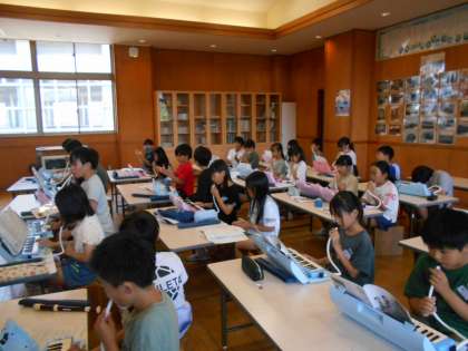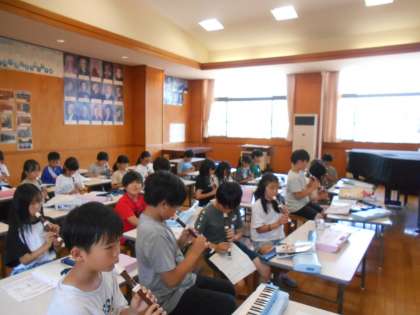 今日は1学期に歌ったり演奏したりした曲をメドレーのように