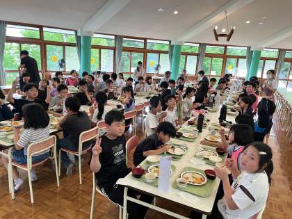 朝食の様子です。 おかわりをする子もいて、みんな元気です。