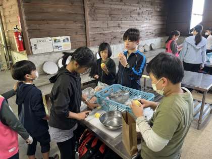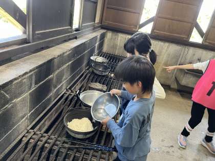 野菜を切ったり米を研いだり役割分担をし、自分の仕事に責任をもって取り組んでいます。
