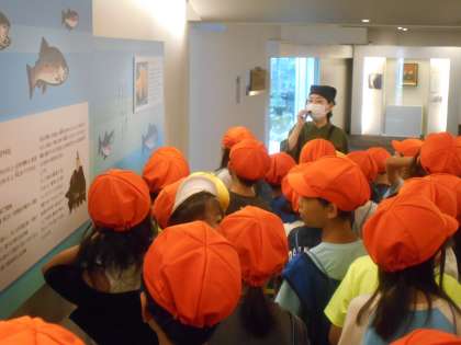 ますのすしミュージアムでの様子です。実際に作っているところは見れなかったのですが、ますのすしの工場の中を見ることができました。ますのすしは昔から食べられており、歴史があること、たくさんの人に食べられていることなどを知ることができました。職員の方に質問して、新たに知ったこともありました。