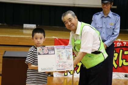 富山南警察署の方や防犯組合の方々から特殊詐欺被害について教えていただきました。被害に遭わないためにはどのようにすればよいかをしることができました。防犯組合会長さんからメッセージカードを受け取りました。家族や知り合いが特殊詐欺に遭わないようにメッセージカードを書いて、注意を呼びかけたいです。