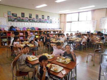 今日で1学期の給食は最後でした。いつも給食を作ってくださる調理員さんに感謝しながらいただきました。2学期もたくさんいただきます!