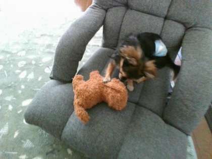 1まい目:うちのふうたがおもちゃのトイドールとあそんでるところだよ。