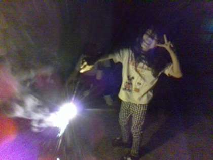 (左)おばあちゃんちで、おとうとと花火をしました。