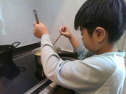 あさごはんに、みそしるをつくるおてつだいをしたよ。