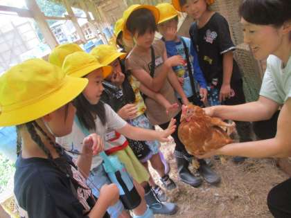 今日は、学年で大沢野校区にある「土遊野」さんの見学に行きました。平飼いされている鶏舎の鶏やヒヨコ、ヤギ等を順に見せてもらいました。初めて行く場所にワクワクしている様子で、鶏の産みたての卵を触らせてもらったときやヤギ小屋に入らせててもらうなど、貴重な体験がたくさんできました。