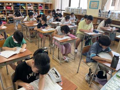 手本をよく見て書いたり、書き順を確かめたりしながら取り組んでいました。