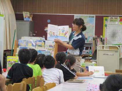 図書室の本の貸し出しがあり、子供たちが嬉しそうに本を選んで借りていました。本の読み聞かせでは、楽しい絵本の紹介だけでなく、生活習慣に関する睡眠の大切さを伝える本の紹介もありました。2学期が始まって、生活リズムを整えている子供たちですが、睡眠に関する本の中には「日本の子供が世界一睡眠が少ない」という驚きの紹介もありました。どんな思い出子供たちが聞いていたか気になるところです。