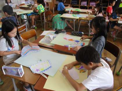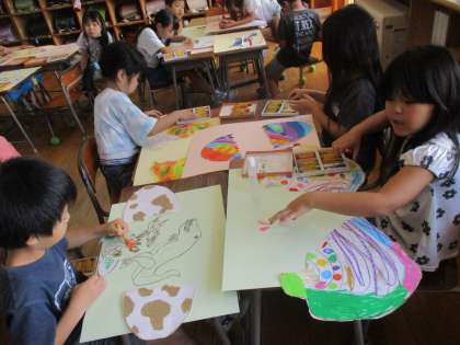 想像力を働かせ、思い思いの世界を描いていく子供たち。