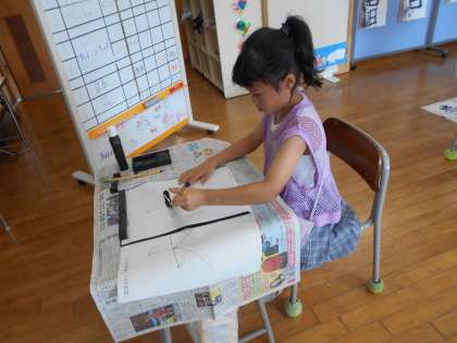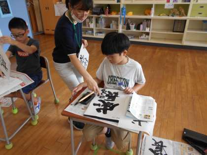 お手本を見ながら、丁寧に書こうとする子供たちでした。