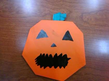 はろうぃんのかばちゃをりました。とてもかわいくつくれました。