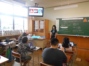 算数科の学習では、しきつめられる図形のしくみについて学習しています。これまでの学習をふりかえり、しきつめられる図形のきまりや、疑問に思ったこと等を発表しました。