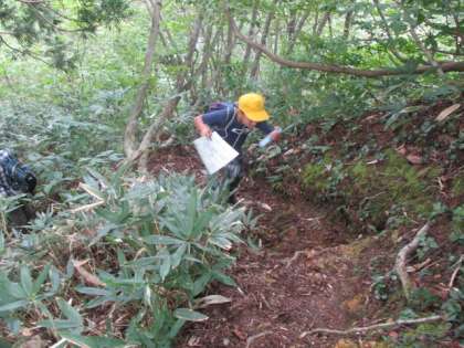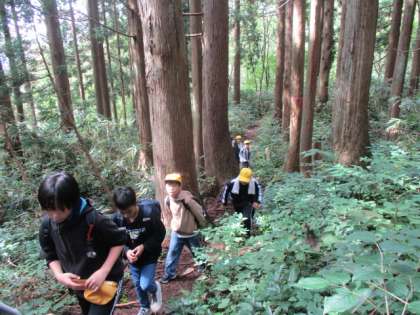 午前中の最初の活動は、ポイント探し。森の中に隠れたポイントを地図を見ながら探す活動です。