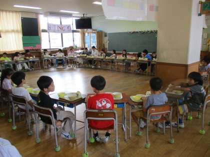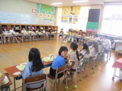 みんなで輪になって食べました。隣に座れたラッキーな子たちもいます!