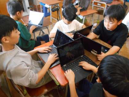 2組では、タイピングの技能を競いながら高めている子供もいました。