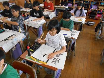 書写の学習では、「成長」を練習しています。筆順に気をつけて丁寧に筆を運んでいました。