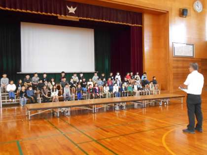 10月10日(木)4年生 今日の授業風景2 公開日 2024/10/10 更新日 2024/10/10 4年生 学習発表会の体育館の様子です。 校長先生から練習後にアドバイスをいただきました。 どんなお話だったのかお子さんに聞いてみてください! あと2週間、精度を上げていきます。