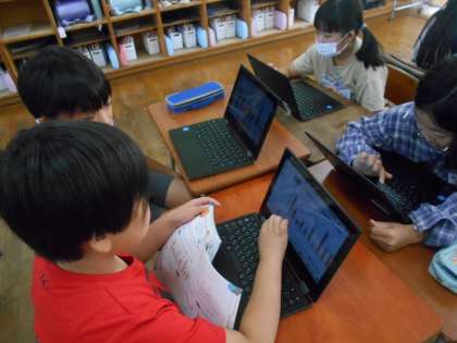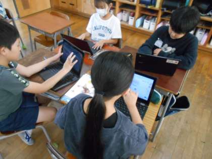 この学級はパソコンのホワイトボード機能を使って話し合いながら進めていました。