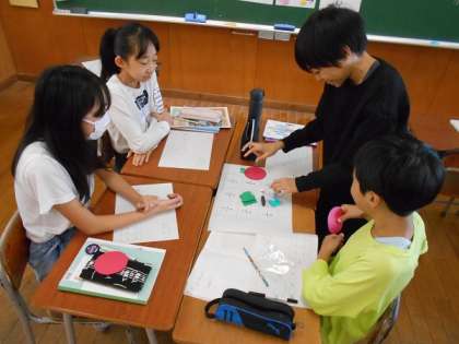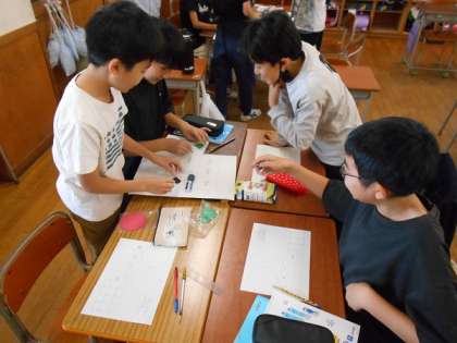 算数の学習では、「分数ゲーム」を通して、分数の足し算を学習しています。分母や分子に着目しながら楽しく進めています。