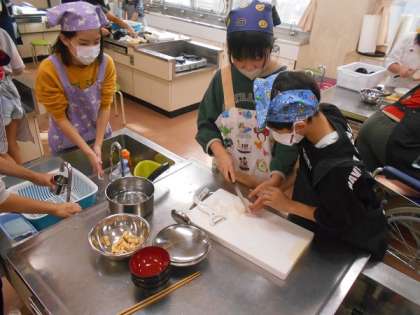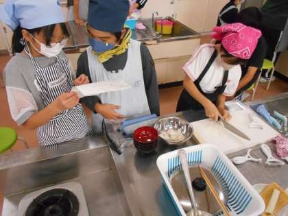 ひとつひとつの手順を確認し、グループで協力しながら調理を進めることができました。