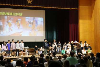 総合的な学習の時間で、福祉の心やユニバーサルデザインについて調べたり体験したりしたことを多くの人に伝えようと練習してきました。高齢者や体が不自由な人への思いやりの心を、見に来てくださった保護者や地域の人に伝えようと取り組んできました。また、学年目標「レベルアップ」を合い言葉に、学習発表会を通して成長した姿を見せようと頑張りました。今日の発表では、レベルアップした4年生の姿を見せることができました。残りの学校生活でも、まだまだレベルアップできるように日々頑張っていきます。