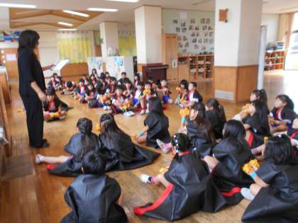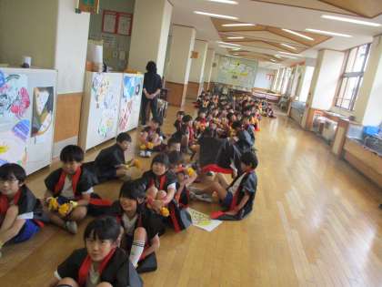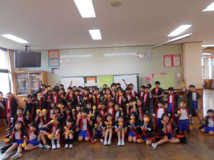 9月から練習し始め、いよいよ今日が本番です。発表前には学年で集まり、気合いを入れました。