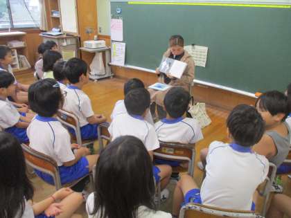 今日のスタートタイムは、読み聞かせボランティアの方による読み聞かせの時間でした。今日はどんな話を聞くことができるのか、わくわくしている様子でした。