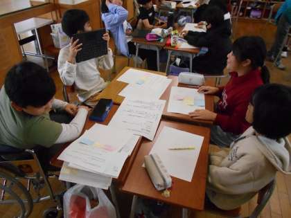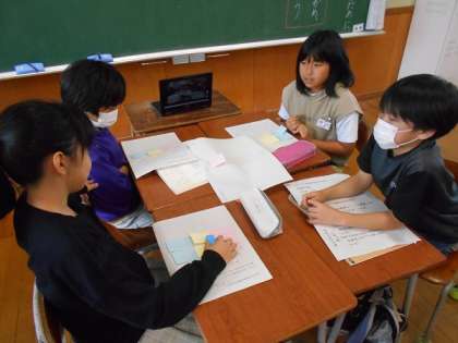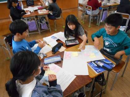 国語の学習では、「よりよい学校生活のために」を学習しています。グループで、司会や記録(クロームブックでの撮影)などの役割分担をしながら話し合いを進めました。