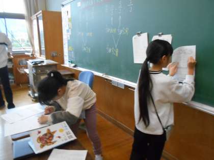 今日の算数は仮分数や帯分数の混じった計算問題でした。