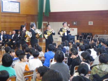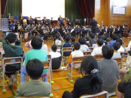 アンコールでは、大沢野小学校の校歌を演奏してくださり、演奏に合わせて全校で合唱しました。