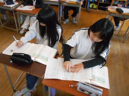 説明文を読み、段落ごとに見出しをつけながら学習を進めています。