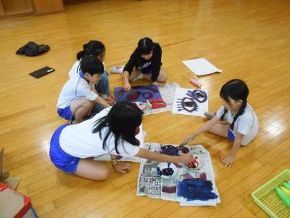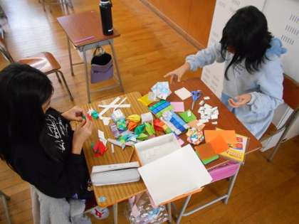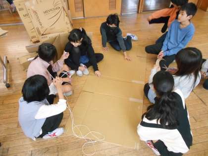 全校のみんなが笑顔になることを目指して、「ハッピー風の子祭り」を企画中です。お化け屋敷や段ボール迷路などを作っています。