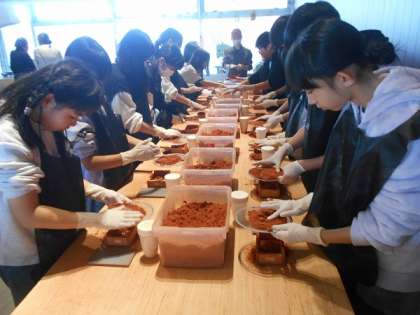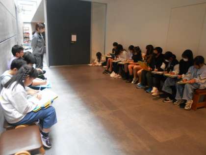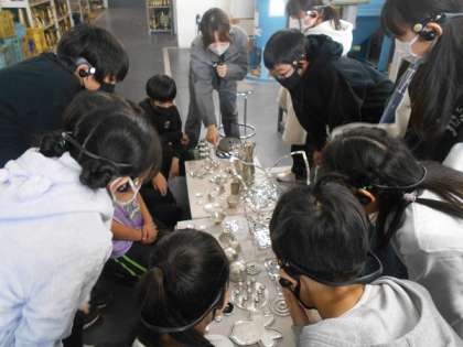 能作の工場見学と体験活動の様子です。体験活動では桜の箸置きを作りました。(1組)