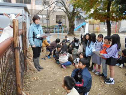 9月から2か月間、生活科の学習でヤギ2頭を飼育していましたが、今日でお別れになりました。最初は体が小さかったですが、この2ヶ月でずいぶん大きくなりました。