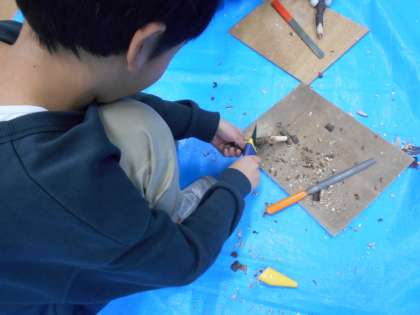 木の枝を小刀で削ることは初めての体験だったので、苦戦していた子供たちでした。しかし、やっていくうちに徐々に慣れてきてコツをつかんだようでした。